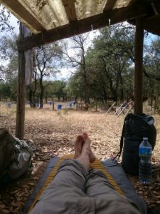 Heute werde ich wieder ohne Zelt schlafen unter der kleinen Überdachung, hoffe das Wetter hält.